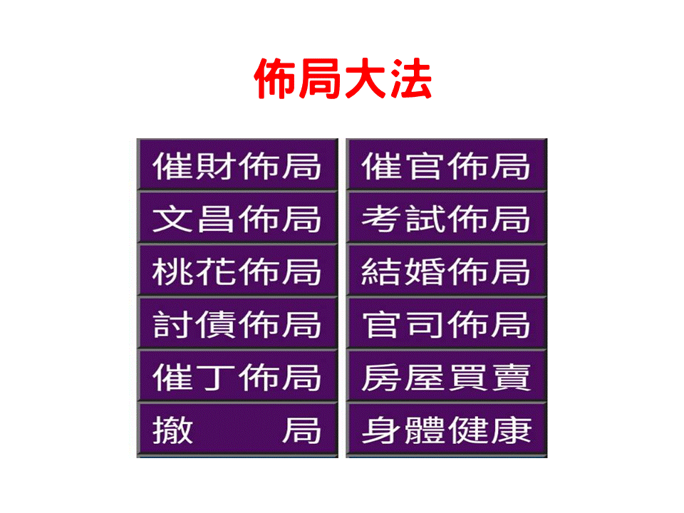 2.催官佈局:針對公職人員及公司升遷之佈局,調整磁場帶動晉升動能